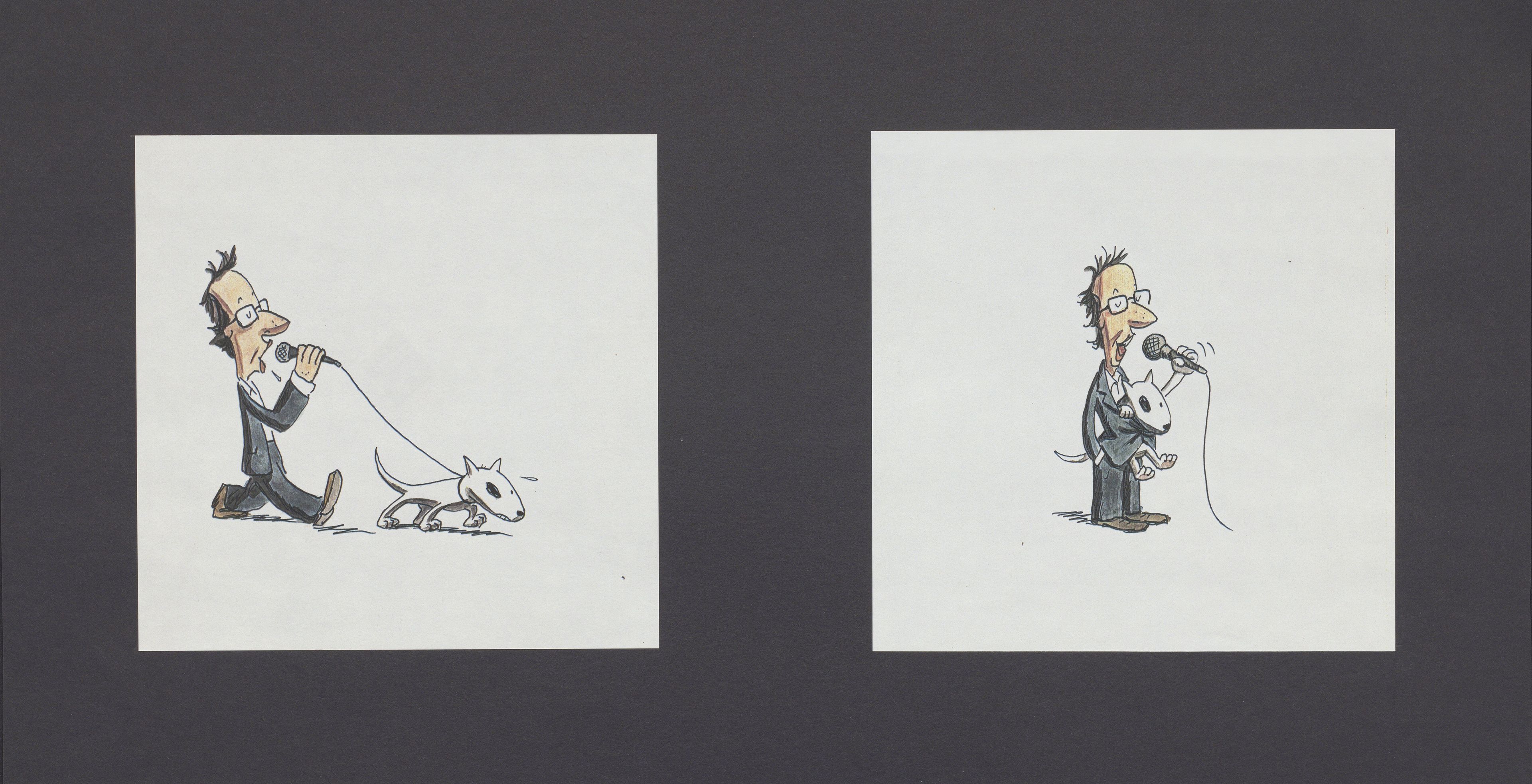 Il cane bull terrier che compare in questo disegno รจ il protagonista della sigla di testa animata creata da Franco Matticchio per il film "Il mostro" (1994), diretto e interpretato da Roberto Benigni.